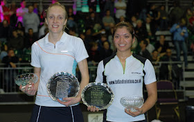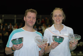 Gabby White, Chris Adcock and their trophy.